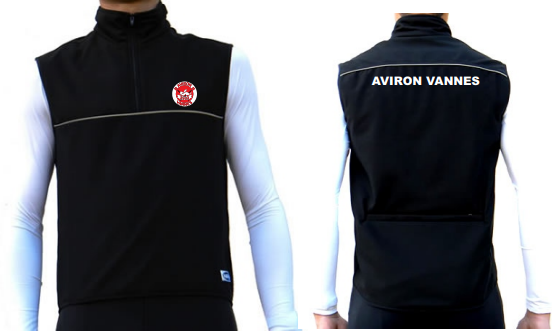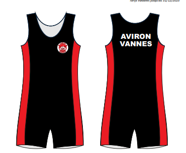 aux couleurs du club : noir avec logo poitrine gauche et « Aviron Vannes » dans le dos (et bandes rouges sur les cotés pour les combinaisons).
