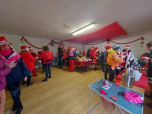 La journée a commencé avec la décoration des deux yolettes Gwened et Stibiden, puis nous avons partagé un petit déjeuner avant de faire un réveil musculaire. Vers 11 h 00, les premiers bateaux ont quitté le ponton pour une déambulation qui nous a menés jusqu’à la place Gambetta, sous l’œil amusé, intrigué des passants petits et grands. L’essaim de notre petite flottille d’une cinquantaine de personnes déguisées en père ou mère Noël, en lutin (et même un renne !) ne passait pas inaperçu !